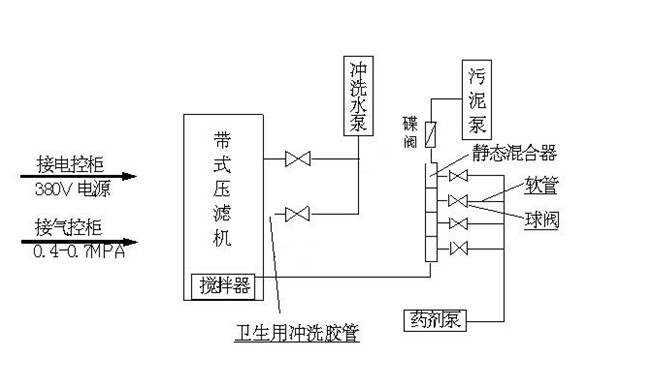 以下是帶式壓濾機(jī)工藝流程圖: